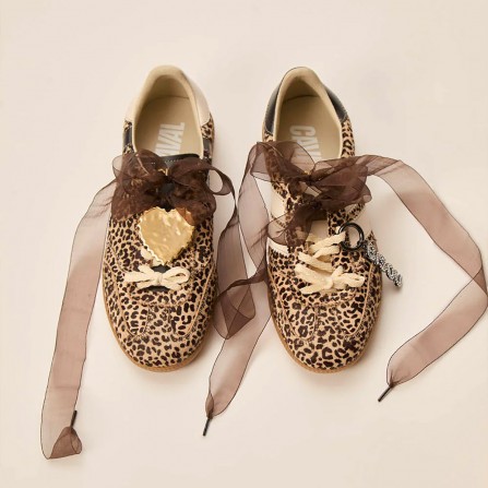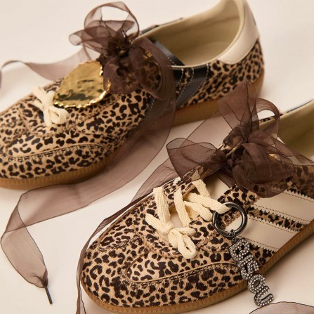Iconiques, les baskets Pulse reviennent plus cool que jamais pour célébrer nos 25 ans. En cuir pony dalmatien bige - marron résolument audacieux, languettes et empiècements posés en asymétrie façonnent ce modèle anniversaire à accessoiriser de lacets XXL en organza, broches ou charms de notre collection pour un look métamorphosé.