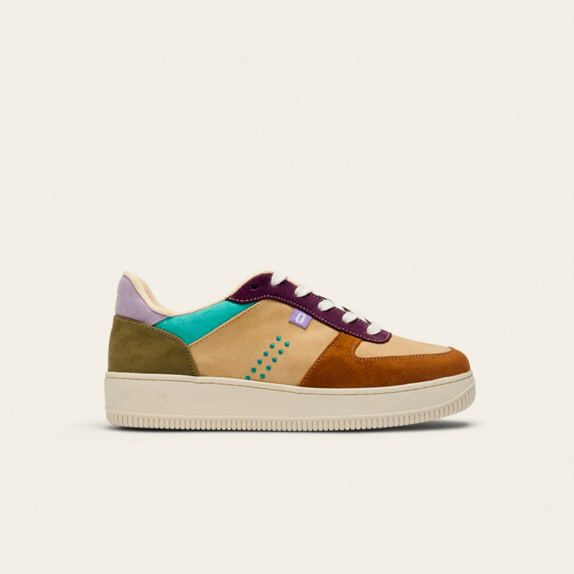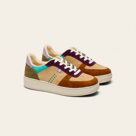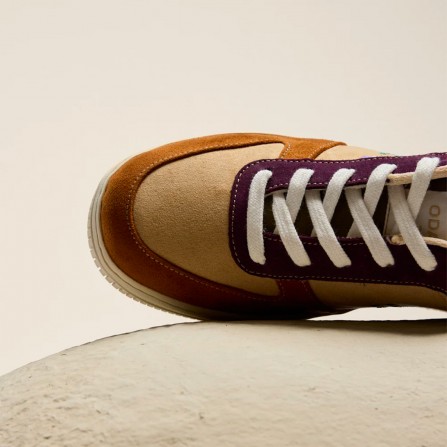Découvrez Maxence F, notre basket basse pour femme en marron, beige et prune. Dessinée dans notre atelier parisien, elle est éco-designée pour un minimum d’impact carbone. Fabriquée à partir de suède recyclé et de suède sourcés en Espagne et en Italie, elle est doublée en mesh pour assurer confort et souplesse. Maxence F est confectionnée avec notre semelle (re)colte : la première semelle fabriquée à partir du recyclage de vos chaussures usagées récoltées dans nos boutiques et de caoutchouc recyclé. Coupure, Piqure et Montage au Portugal.