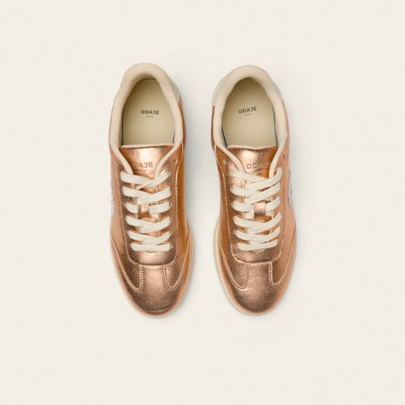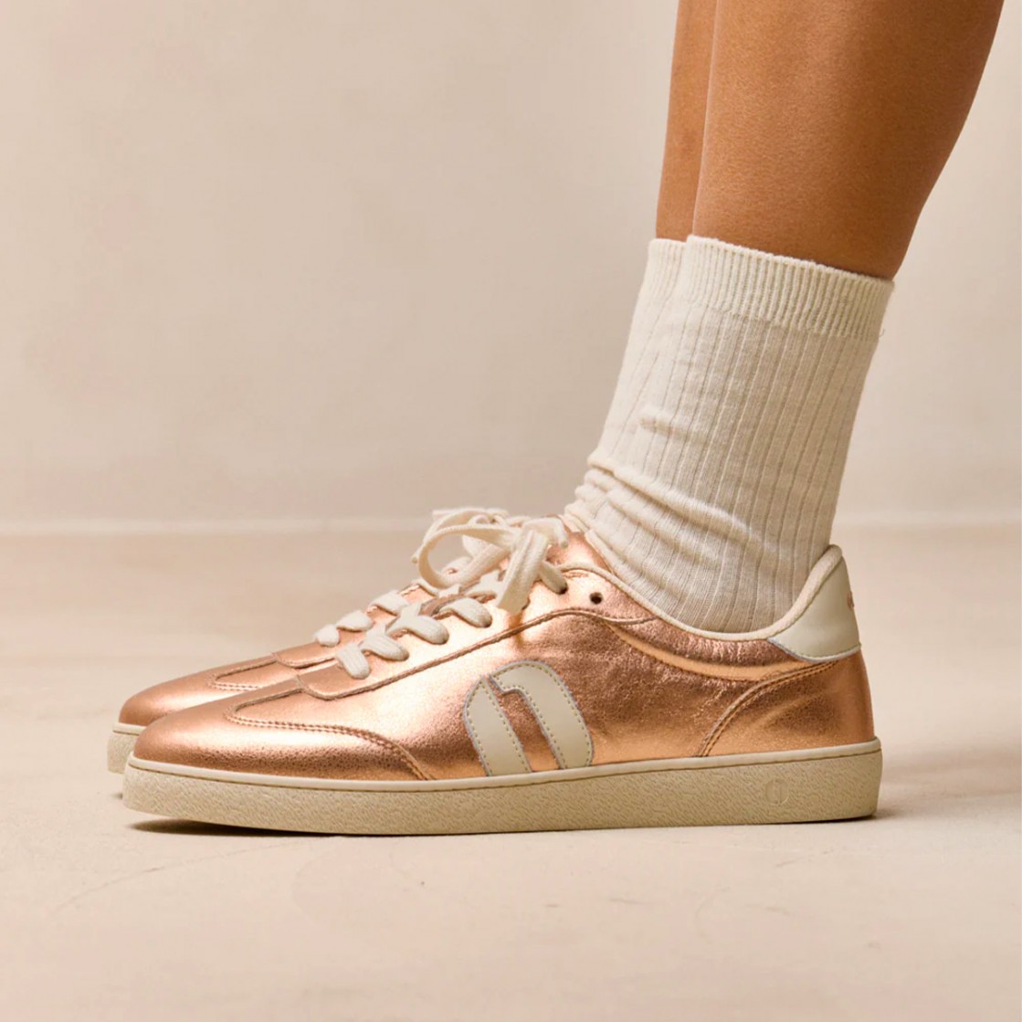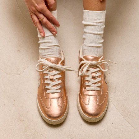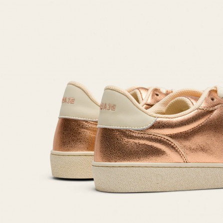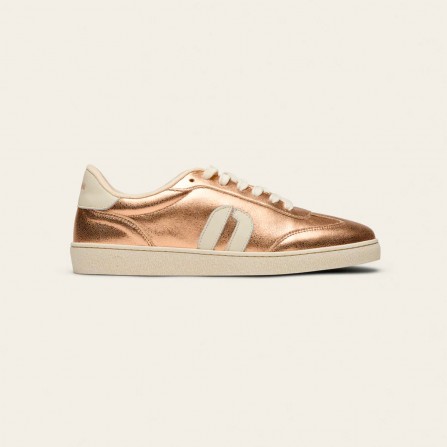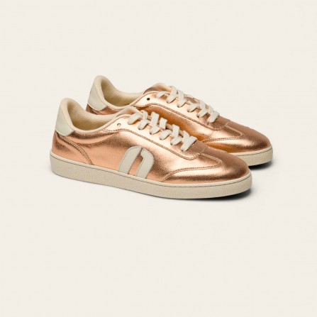 Découvrez Lucia, notre basket basse pour femme iconique en cuivre et écru. Fabriquée au Portugal, Lucia allie style et éco-responsabilité avec sa semelle extérieure (re)colte, la première semelle fabriquée à partir du recyclage de chaussures usagées collectées dans nos boutiques. La doublure et la semelle intérieure en mesh garantissent un confort optimal. Construite avec la technique de montage Strobel, Lucia assure souplesse et durabilité.
