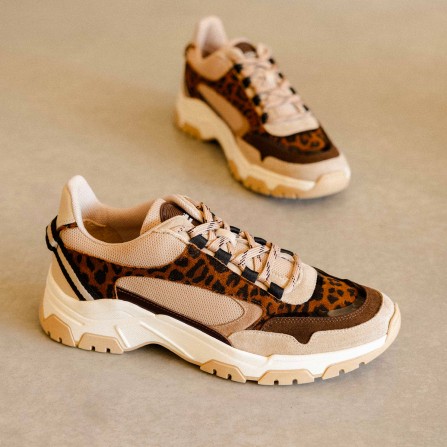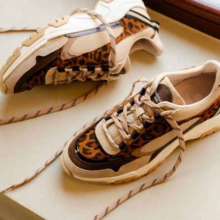 - Empiècements en cuir suédé imprimé léopard, cuir d'agneau, cuir suédé et cuir (tanneries : Italie et Portugal)