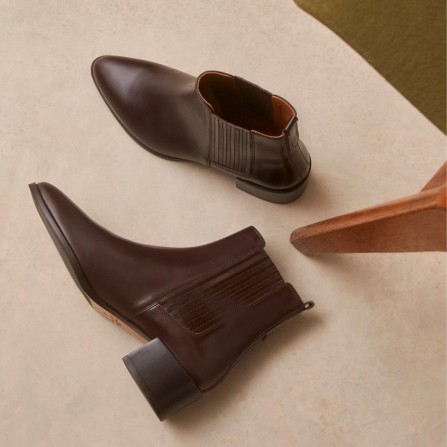 Valeur sûre d'hiver en hiver, notre iconique bottine Chelsea se soulève d'un cran. Elle est montée sur un petit talon de 40 cm qui dépasse légèrement vers l'arrière pour un aspect plus décontracté. Ses élastiques latéraux sont recouverts d'inserts en cuir, un détail esthétique et pratique permettant entre autres de faciliter le passage du pied. Le numéro 408 représente à lui seul tout ce que l'on recherche dans une bottine : la versatilité, le confort et la féminité.