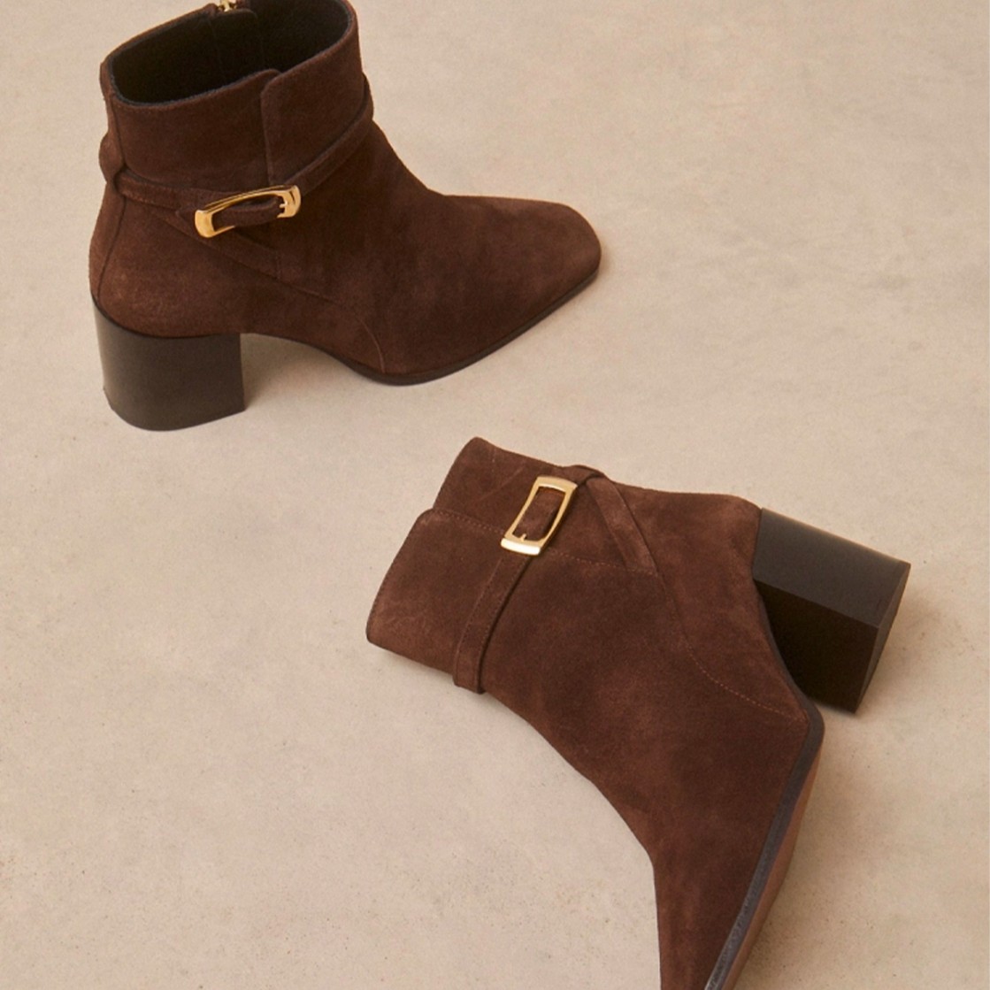 Notre numéro 668 est un véritable bijou. Son talon bloc de 7 cm, gainé de cuir lamellé, élance la silhouette et confère une allure assurée tout en offrant une stabilité parfaite pour un port prolongé.