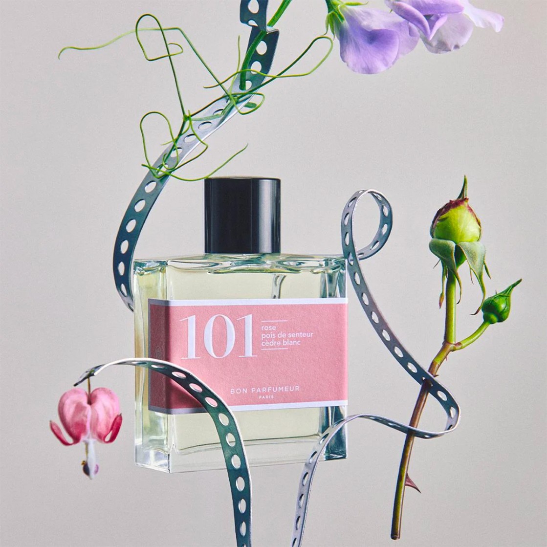 Rose, pois de senteur, cèdre blanc