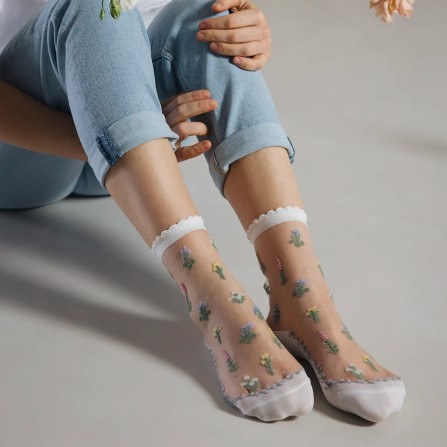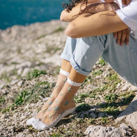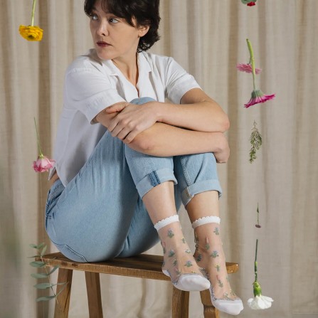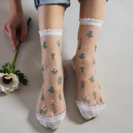 Des chaussettes à fleurs qui nous font revivre sans cesse l’euphorie du printemps. Élégantes et féminines, elles se portent très bien avec une paire de baskets blanches et un jean en denim !