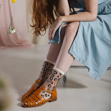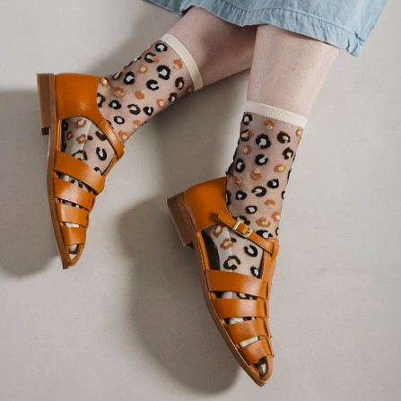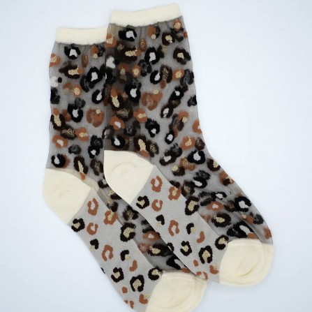 Tout en transparence avec un soupçon de paillettes dorées, ces chaussettes au style léopard donnent un effet tendance à vos tenues. Côté look, ses élégantes teintes de beige, noir et marron apporteront un style chic et audacieux à vos tenues. À porter par exemple avec une jupe et des sandales. Le tout pour un effet wow garanti !