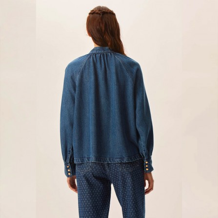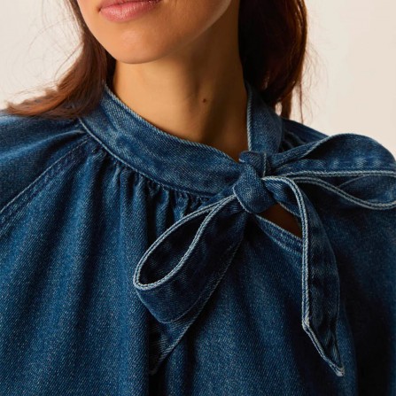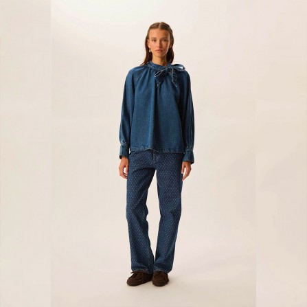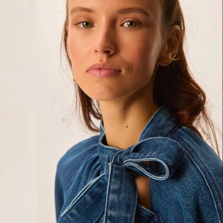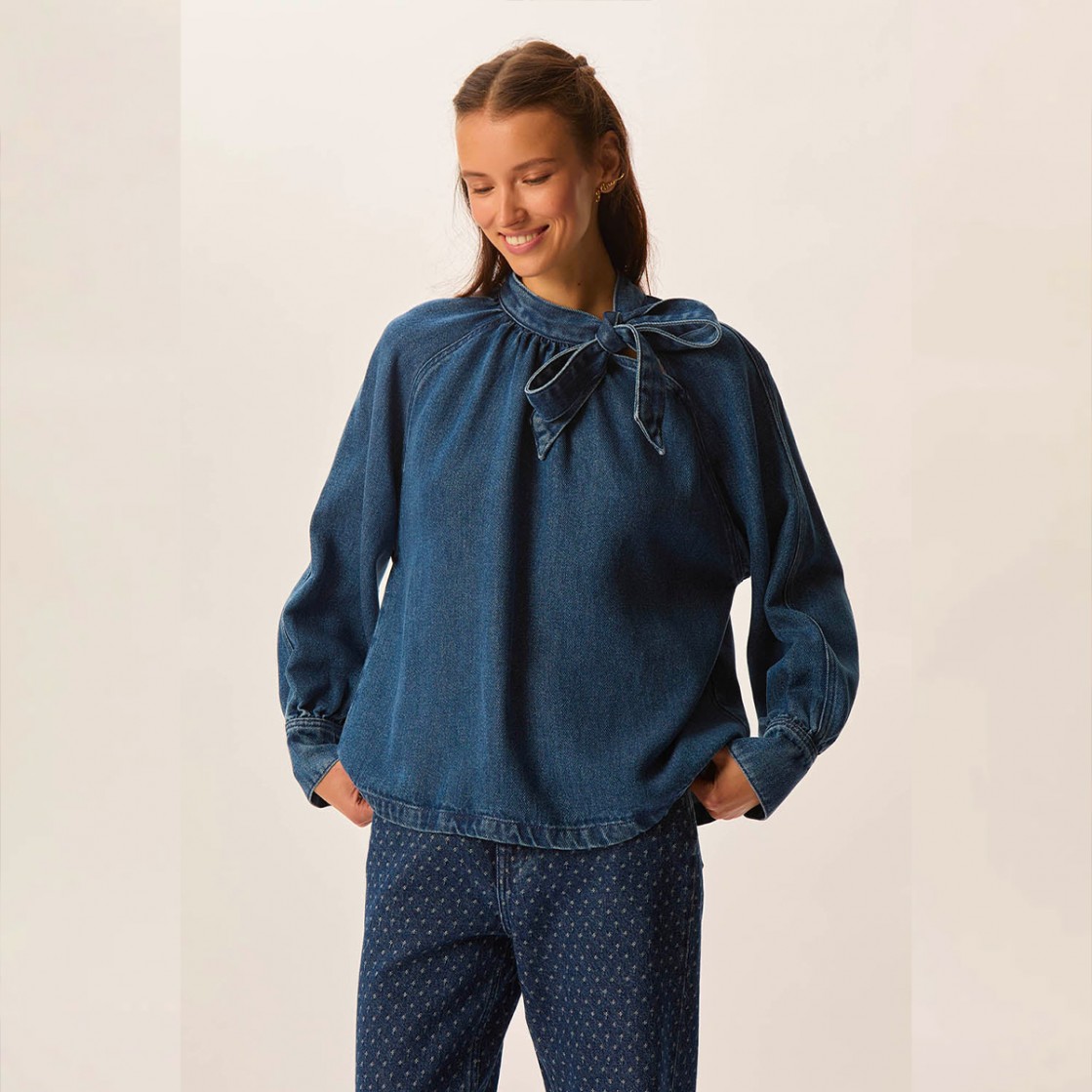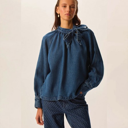 Plus que jamais au coeur de nos envies mode, la blouse Lou s'inscrit dans le sillage de la tendance de la rentrée. En denim lyocell très souple et fluide et dotée d'un col lavallière surdimensionné, elle se suffit à elle-même pour créer une tenue dans l'air du temps.