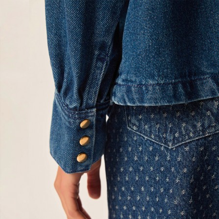 La ligne de denim est travaillée en collaboration avec une spécialiste du denim écoresponsable. Elle sélectionne des matières respectueuses de l'environnement et repense de manière éthique les traitements des tissus et la fabrication des produits