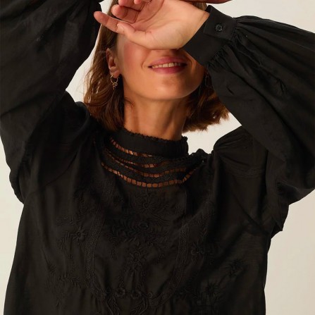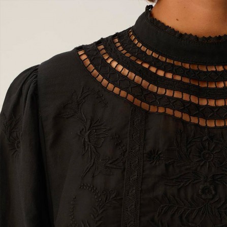Sens du détail et finitions soignées, la blouse Ethan annonce une saison bohème chic avec son col brodé ajouré et ses broderies florale. Une pièce à porter seule ou sous un gilet sans manches pour une silhouette au charme vintage.