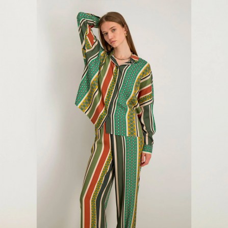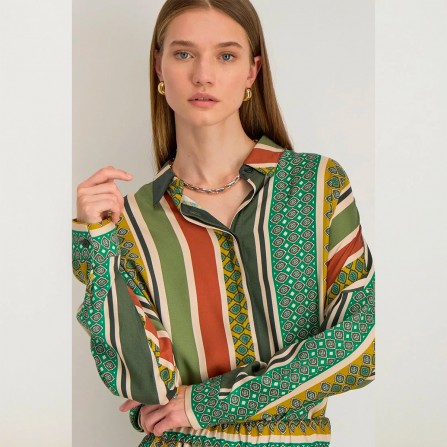 Réalisée dans un tissu italien fluide, la chemise Neria est le coup de cœur de la saison avec son imprimé exclusif aux motifs rétro qui évoque l'esprit libre des seventies. *Se décline en plusieurs modèles.