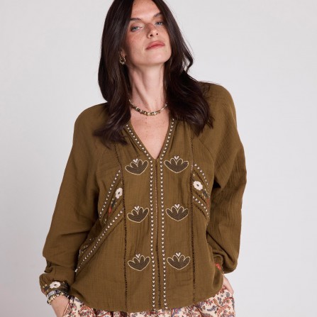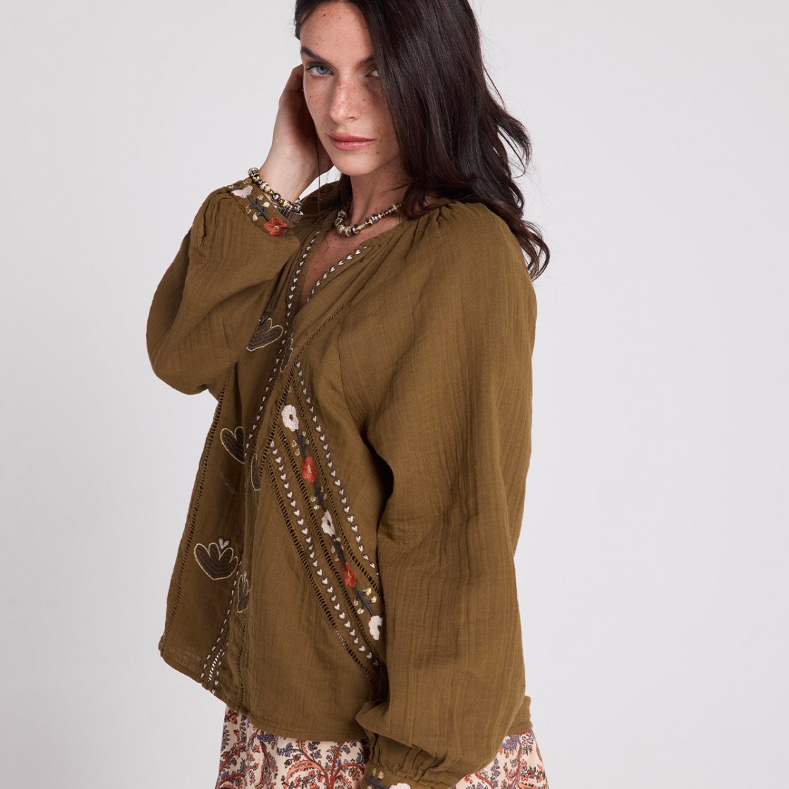 CHEMANCE est une blouse au décolleté en v et aux manches longues.
