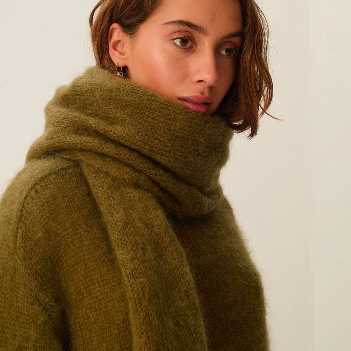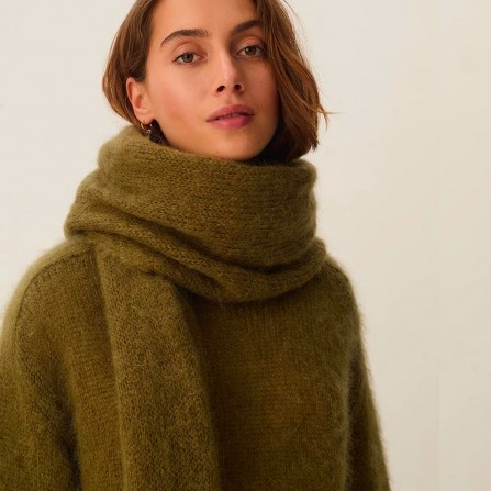 Écharpe longue en Kid Mohair et laine mérinos vert kaki