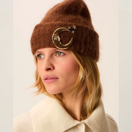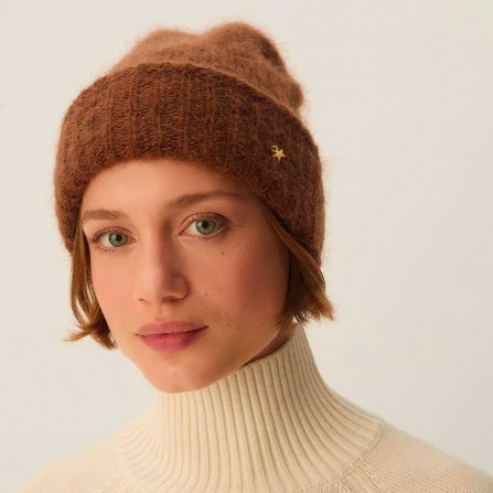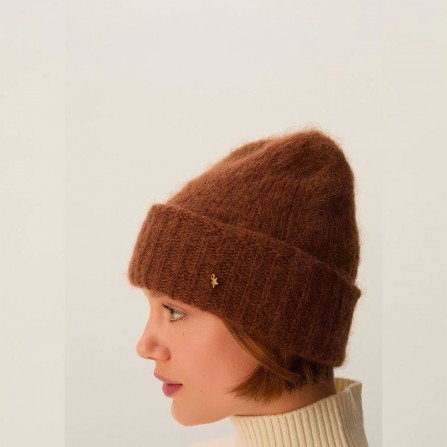 Bonnet à revers en Kid Mohair et laine mérinos marron