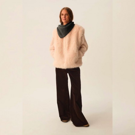 • Réalisée dans un mélange de laine mérinos et d’alpaga combinant douceur et chaleur. Laine certifiée sans mulesing.