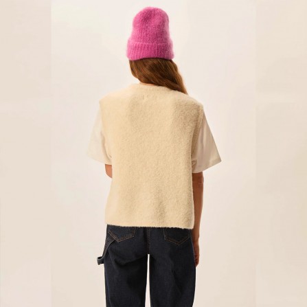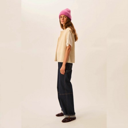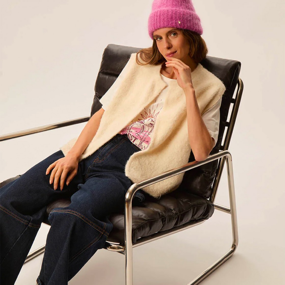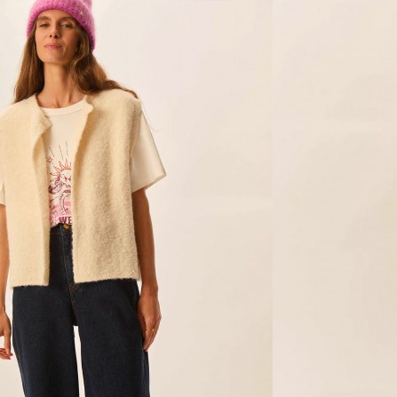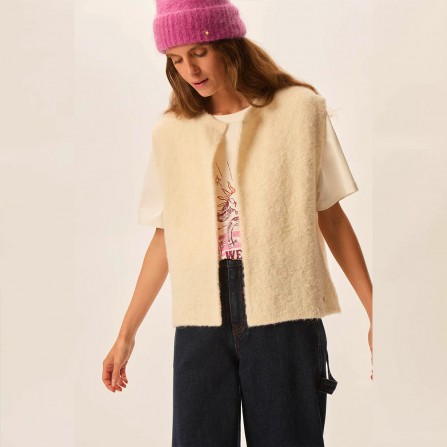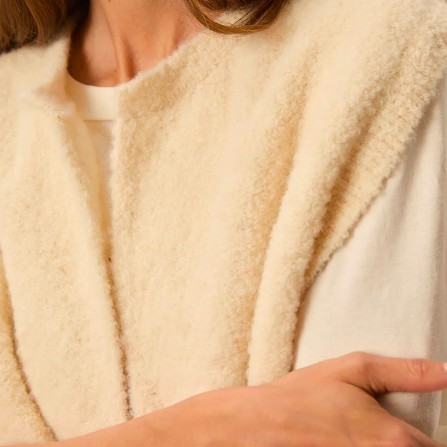 Inspiré du vestiaire vintage, le gilet Achille femme se porte sans manches et teinté d'un coloris intemporel pour une silhouette chic et folk. Doux et cosy avec sa matière bouclette, il vous accompagnera tout au long de la saison.