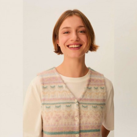Parce qu'on l'aime pour son style preppy, l'iconique gilet sans manches revient dans une version jacquard plus rétro que jamais avec le modèle Auguste. It-pièce de l'hiver, il twistera les tenues les plus simples.