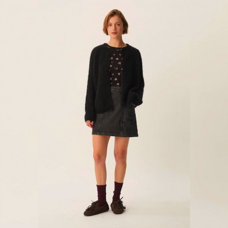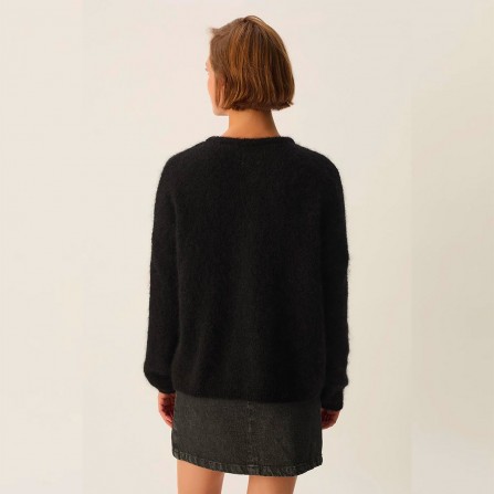 Fil italien exclusif "Moelleux", fabriqué depuis 10 ans pour Des Petits Hauts, fil signature de la marque. Ce fil emblématique associe du Kid Mohair de qualité supérieure et de la laine mérinos issue de fermes respectueuses du bien-être animal, certifiées sans mulesing. Résultat : un fil gonflant, chaud, incroyablement doux et au toucher duveteux, reflet d’un savoir-faire unique.
