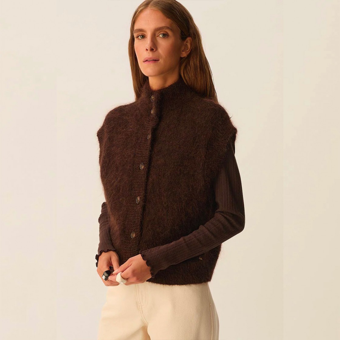 It-pièce à avoir dans son dressing, le gilet sans manches Alibou s'immiscera dans tous les looks cette saison. Chic, graphique et versatile, une maille chaude et duveteuse à superposer sur vos petits hauts.