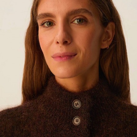 Fil italien exclusif "Moelleux", fabriqué depuis 10 ans pour Des Petits Hauts, fil signature de la marque. Ce fil emblématique associe du Kid Mohair de qualité supérieure et de la laine mérinos issue de fermes respectueuses du bien-être animal, certifiées sans mulesing. Résultat : un fil gonflant, chaud, incroyablement doux et au toucher duveteux, reflet d’un savoir-faire unique.