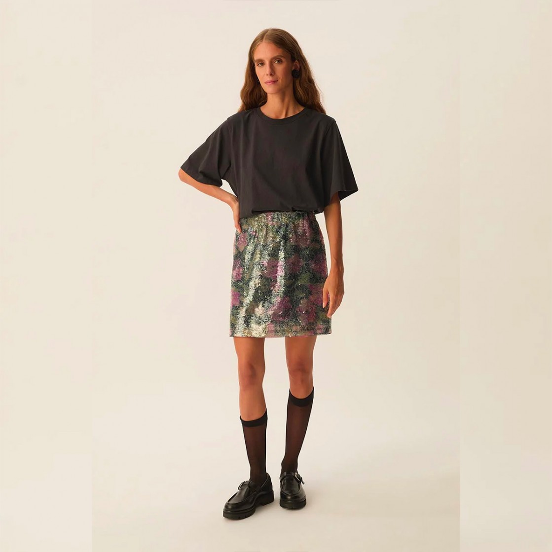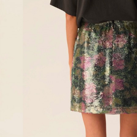 • Jupe en sequins imprimé floral