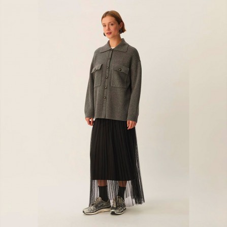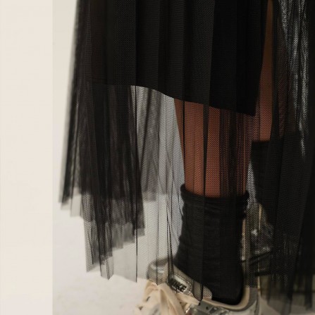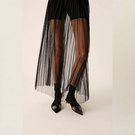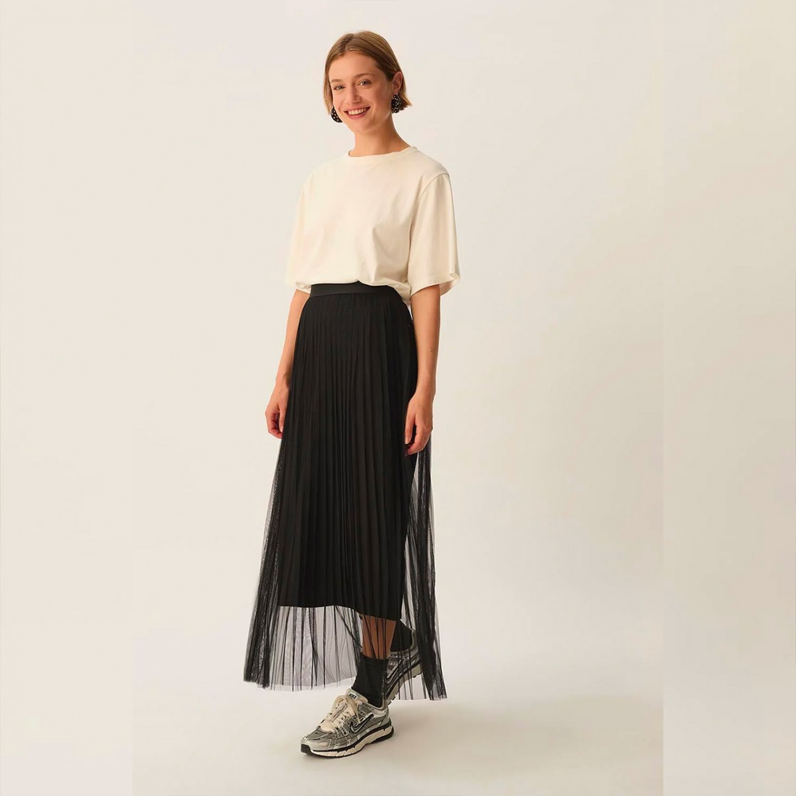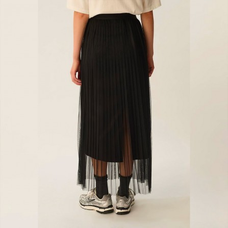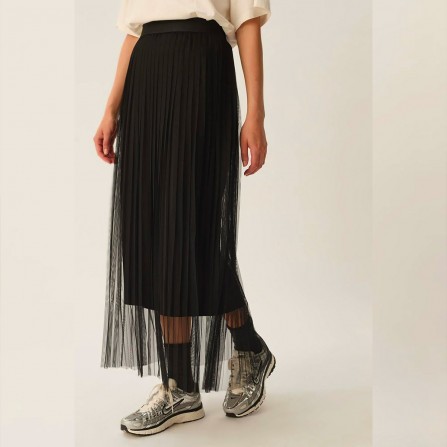 • Jupe mi-longue en tulle plissé et satin effet 2 en 1