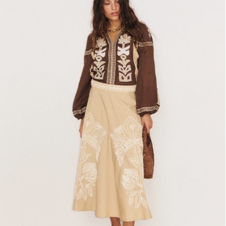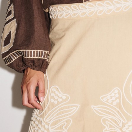 Portez-la avec un pull fin rentré ou un top fluide et des sandales ou bottines élégantes pour un look romantique et contemporain. Les accessoires discrets laisseront toute la place à la richesse des détails brodés.