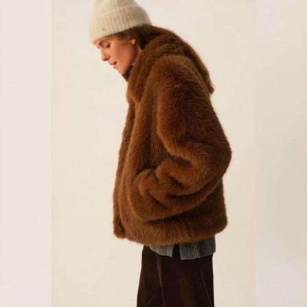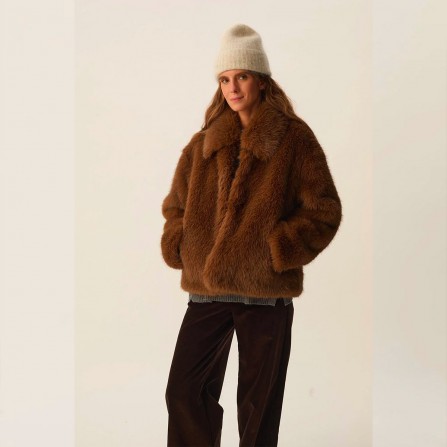 Manteau en fausse fourrure marron