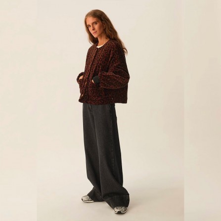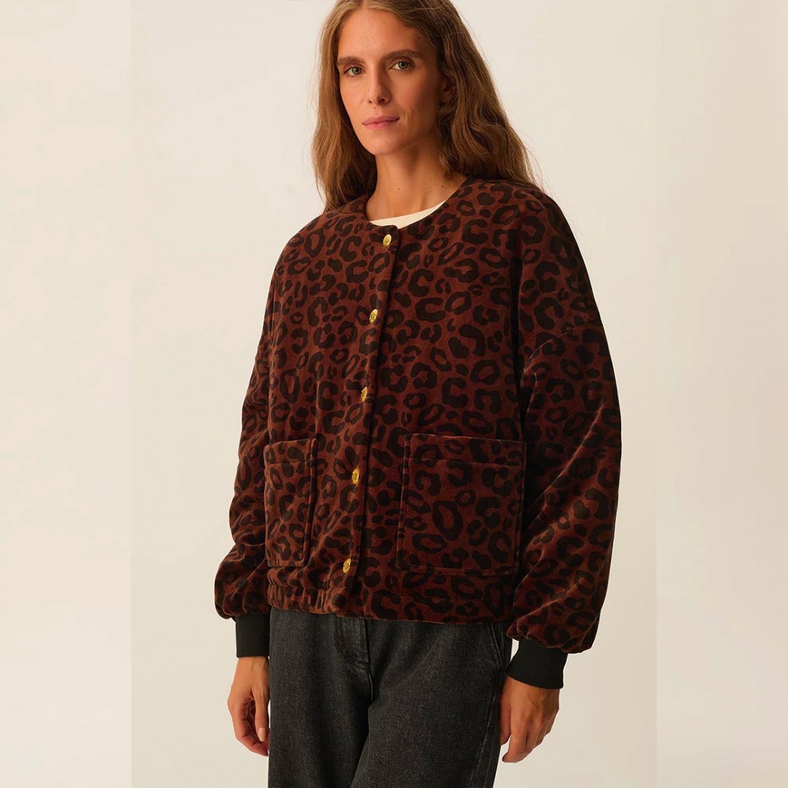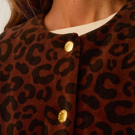Veste coton velours marron léopard
