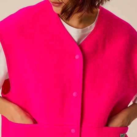 It-pièce à avoir dans son vestiaire, la veste sans manches Gaelle en laine bouclette séduit pour son confort et sa versatilité. Coupe droite épurée accessoirisée d'une étiquette à message, portée comme un gilet sur un t-shirt pour flâner à la maison ou glissée sous un manteau, si vous ne deviez en choisir qu'une ce serait elle.