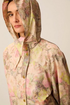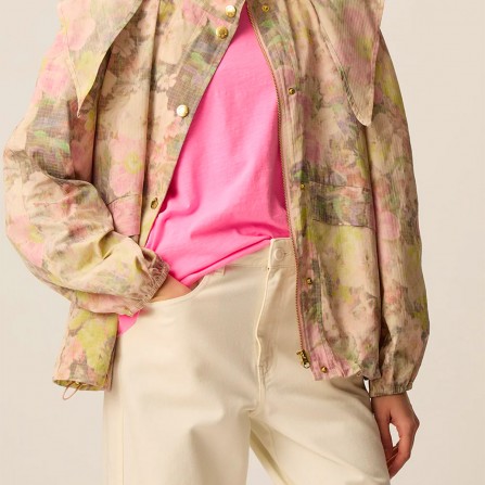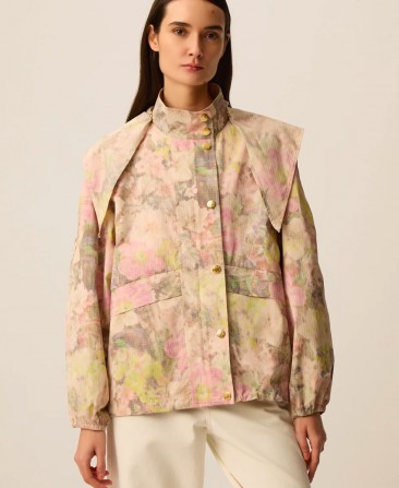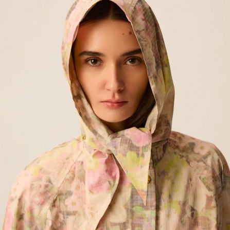 Imprimé floral graphique, volume oversize et détails dorés, la parka imperméable Ylang redéfinit les contours du vêtement outdoor avec audace et modernité. Non doublée, modulable et facile à enfiler grâce à son ouverture zippée et son cordon de serrage en base, cette veste technique se portera aussi bien par temps pluvieux que pour son style.