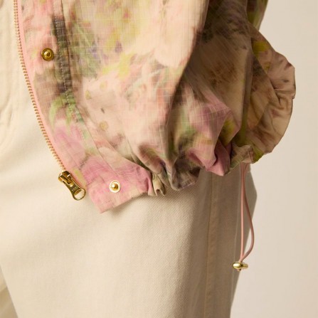 • Imprimé exclusif Des Petits Hauts Bouquet. Ce motif floral pastel réinterprète le camouflage avec douceur et poésie. Un jeu secret entre ombre et floraison mystérieuse où les fleurs se dissimulent pour mieux surprendre au détour d'un mouvement.