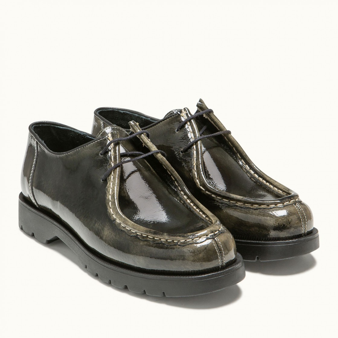 Le velours vernis est une matière plus délicate. Nettoyez vos chaussures simplement avec un chiffon légèrement humide. N’appliquez aucun produit ni imperméabilisant pour éviter d’altérer la finition.