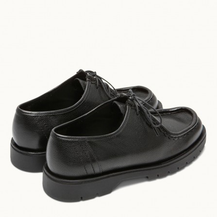 KLEMAN vous présente le PADROR G VGT, une paire de derbies à semelle crantée conçues à partir d'un cuir grainé tanné de manière végétale au sein d'une tannerie italienne. Cette technique durable et éthique donne un aspect authentique et singulier au cuir.
