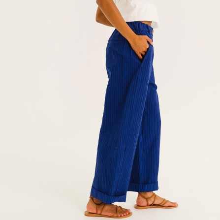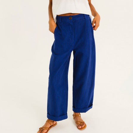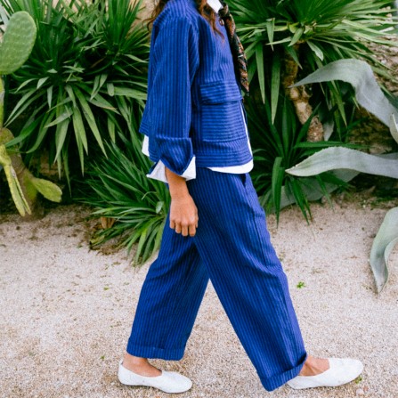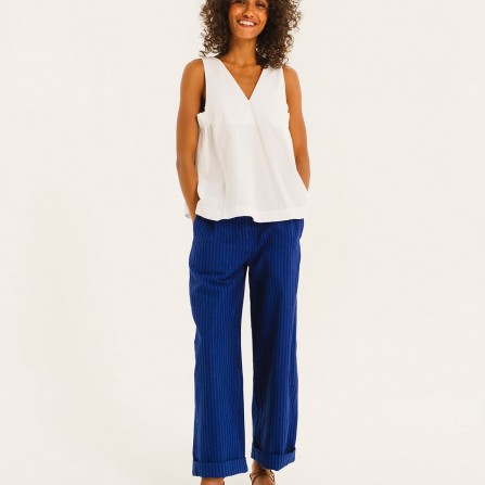 EMIR est un pantalon à taille élastiquée sur le dos. Longueur 7/8 avec un volume se resserrant légèrement sur le bas.