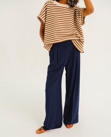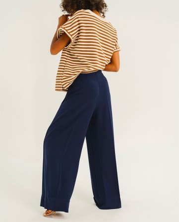 UPTON est un pantalon large, taille medium, volume loose avec ces deux pinces devant, jambe large et droite.