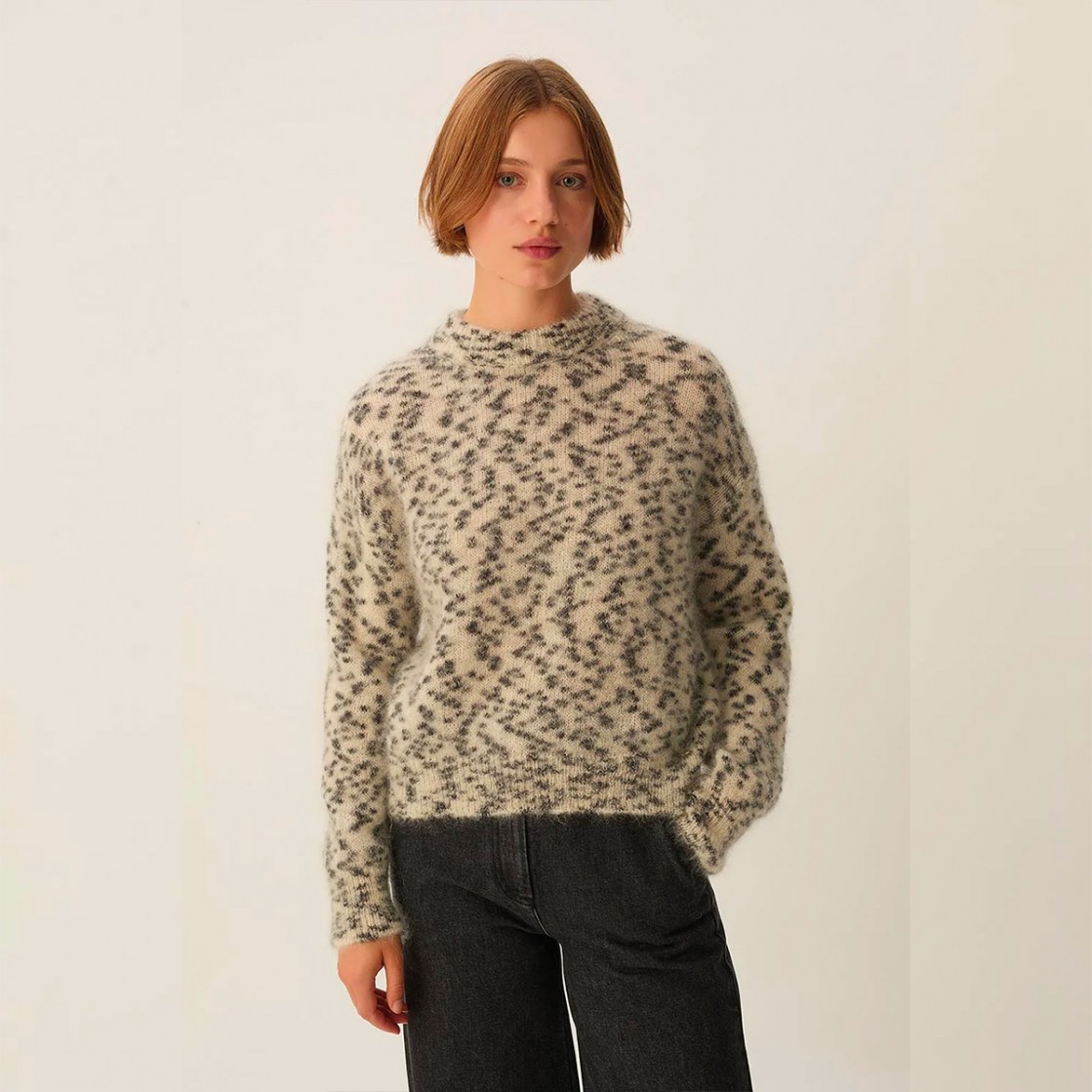 Audacieux et ultra-désirable, le pull Boleo ne passera pas inaperçu cette saison. Chaud et duveteux, coupe boxy contemporaine et col rond subtilement montant, son imprimé dalmatien sublimera vos looks de saison.