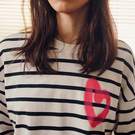 • Déclinaison de la marinière avec trois imprimés cœur effet tag exclusif