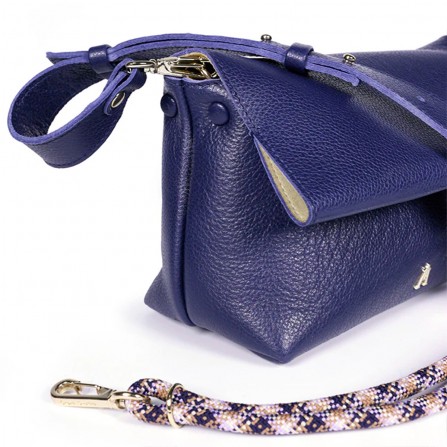 2 bandoulières interchangeables : cuir réglable et corde d’escalade
