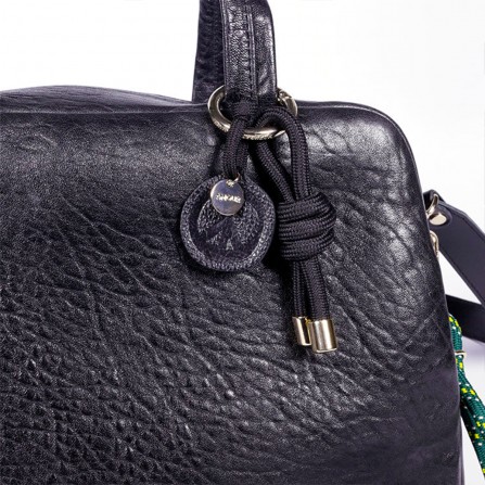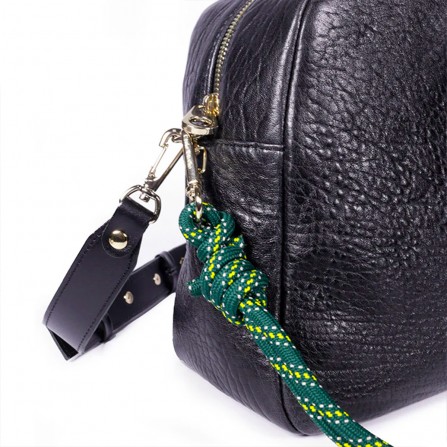 Deux bandoulières interchangeables : cuir réglable et corde d’escalade