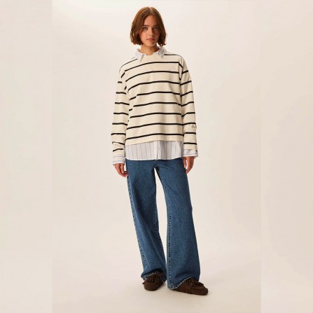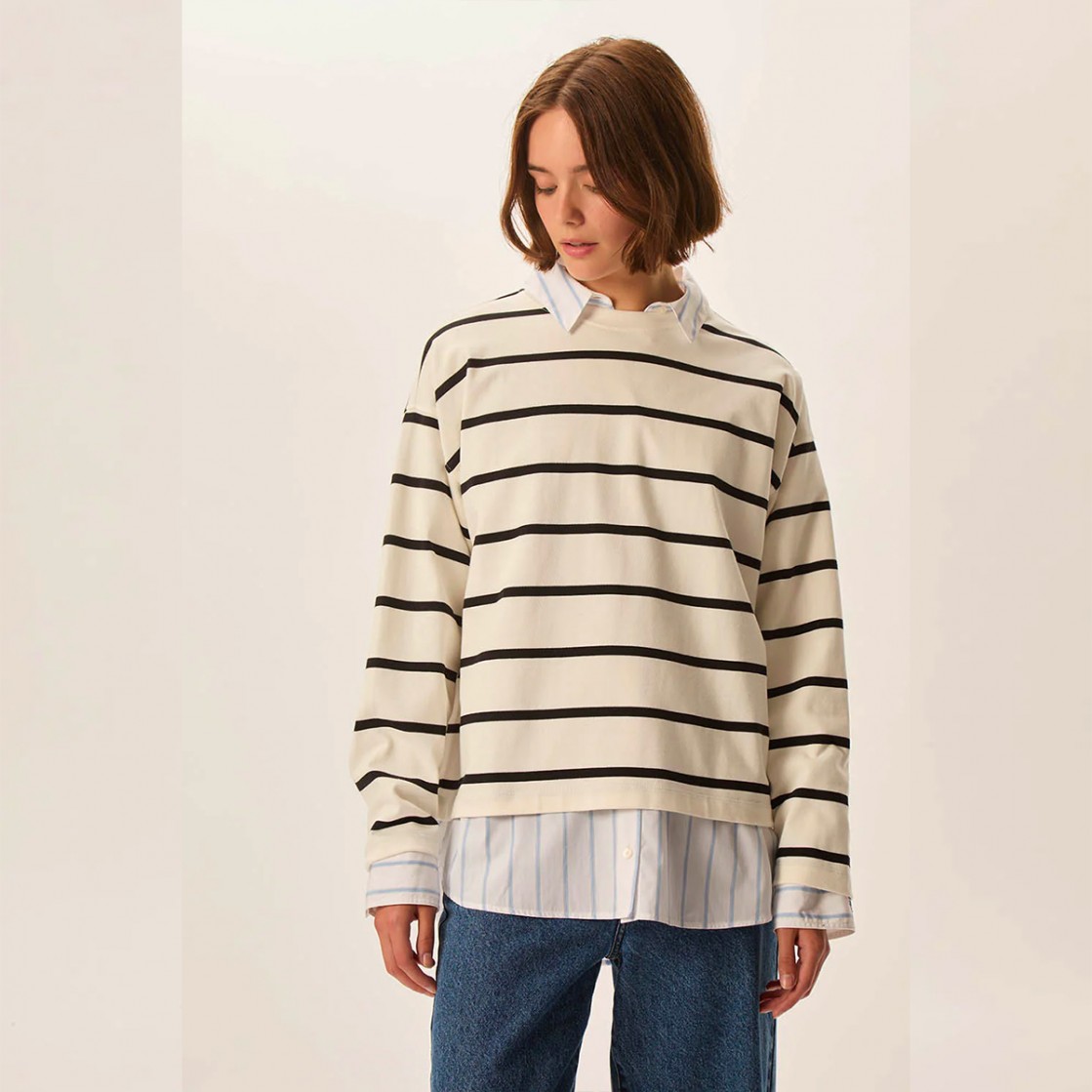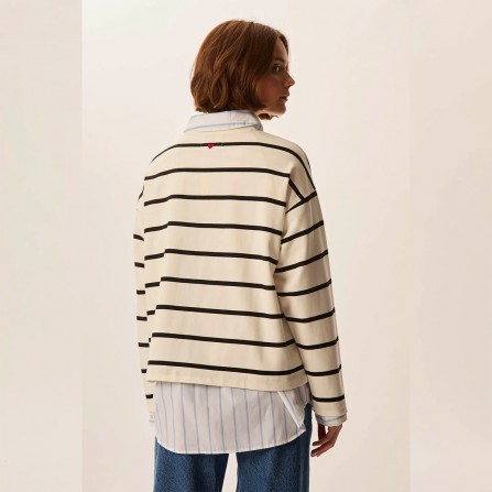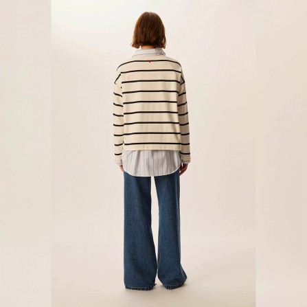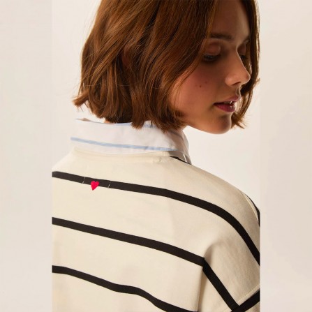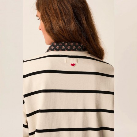 Avec sa coupe décontractée et ses rayures espacées, Felizou c'est la marinière qu'on aime mixer à une blouse florale ou un pantalon de tailleur pour une silhouette contemporaine. Son petit plus : un joli coeur brodé au dos.